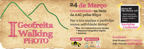 À noite, teremos um jantar convívio na sede da AAC com todos os participantes onde já poderemos apreciar os trabalhos fotográficos de todas as equipas que estarão devidamente afixados no nosso telheiro!!!