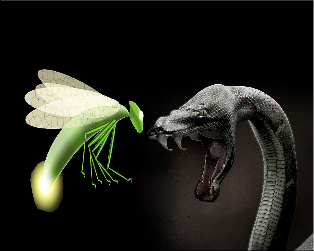 O pirilampo, tremendo de medo, tentava fugir o mais rápido que podia. Já a serpente, com a sua expressão feroz, vivia somente para o perseguir e jamais pensava em desistir.