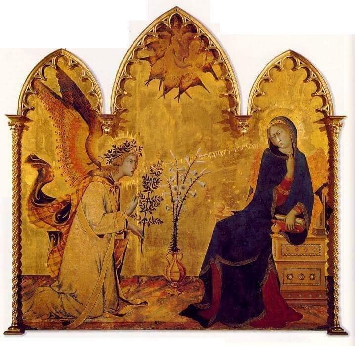 Detalhe da pintura acima: "Anunciação à Maria" - Simone Martini.