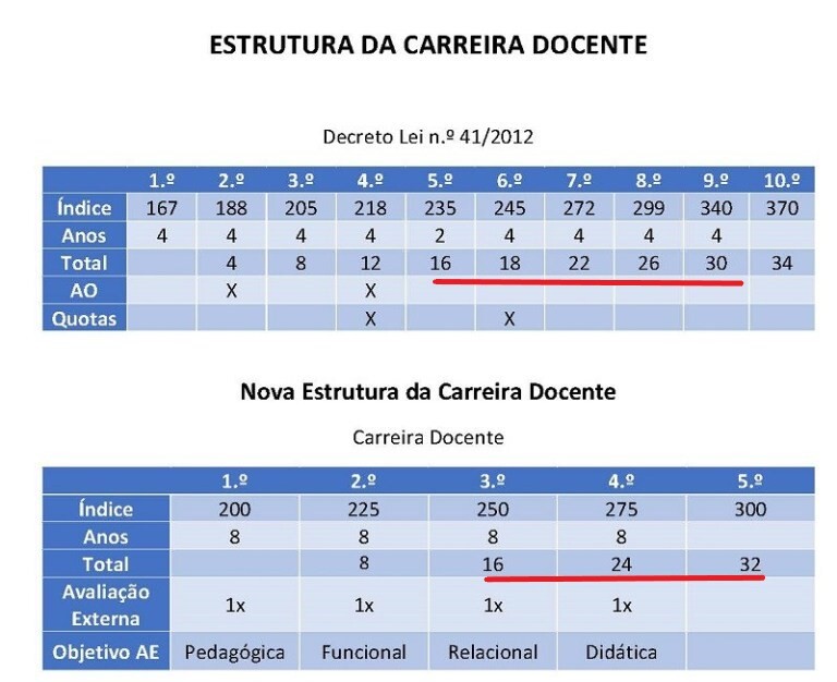 Recordo que, em 2019, Arlindo Ferreira apresentou, no seu blog, um Ensaio Para Uma Nova Carreira Docente. A imagem que serve de ilustração a este texto resume a comparação entre a estrutura atual e a estrutura proposta para a nova Carreira Docente pensada pelo seu autor.