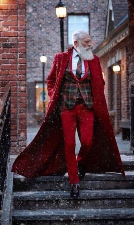 A (exatamente) um mês da silent night, este Pai Natal estiloso, mais compatível com os estereótipos contemporâneos, parece ter deixado de lado as renas e o trenó para andar por aí com um casaco vermelho de alta costura e uma atitude de estrela de cinema! Em vez do tradicional "Oh! Oh! Oh!", até podemos imaginá-lo a dizer "Olhem para mim!" enquanto a neve cai em câmara lenta só para compor o plateau.