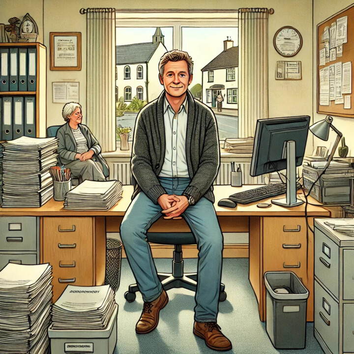 Contudo, é um funcionário competente. Só, almofadado por dois computadores, faz andar a “máquina” que soube montar. Muitas vezes, é o assessor que um qualquer presidente gostaria de ter. Diligente, interessado e muito atento aos detalhes, ele é o homem que o povo respeita. Sempre que fala, opta por um registo monocórdico, que transmite tranquilidade. Em resumo, é um profissional que exerce, com assinalável eficácia, as suas funções, sabendo ouvir e, sempre que necessário, persuadir os utentes.