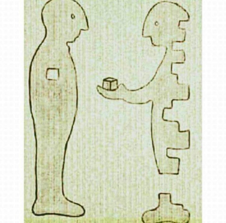 Quando vi esta imagem, soltei com pronta ingenuidade: "parece feita à medida da frase de Pessoa": o sentir vago e profundo, para ganhar “lugar exterior”, precisa de ser dado em pedaços, como o corpo esburacado da figura que estende o pequeno cubo.